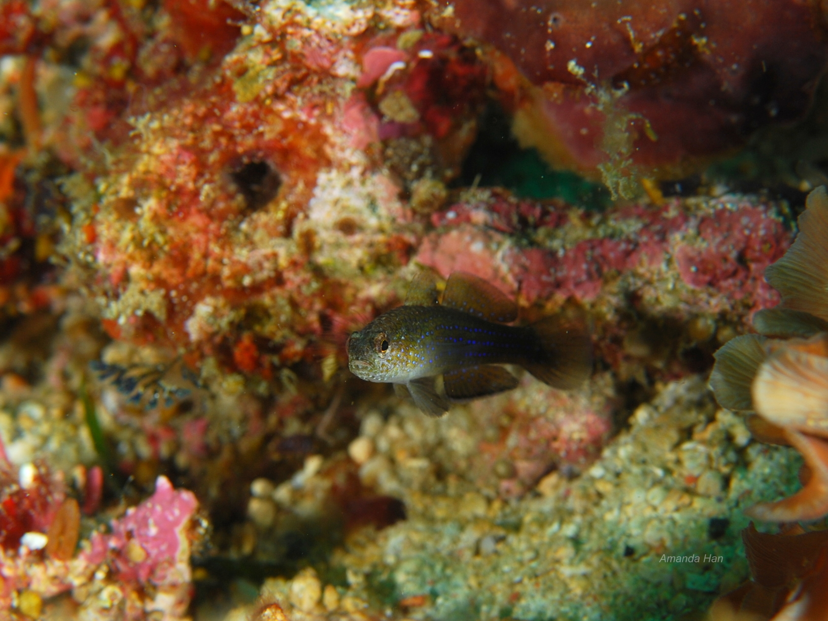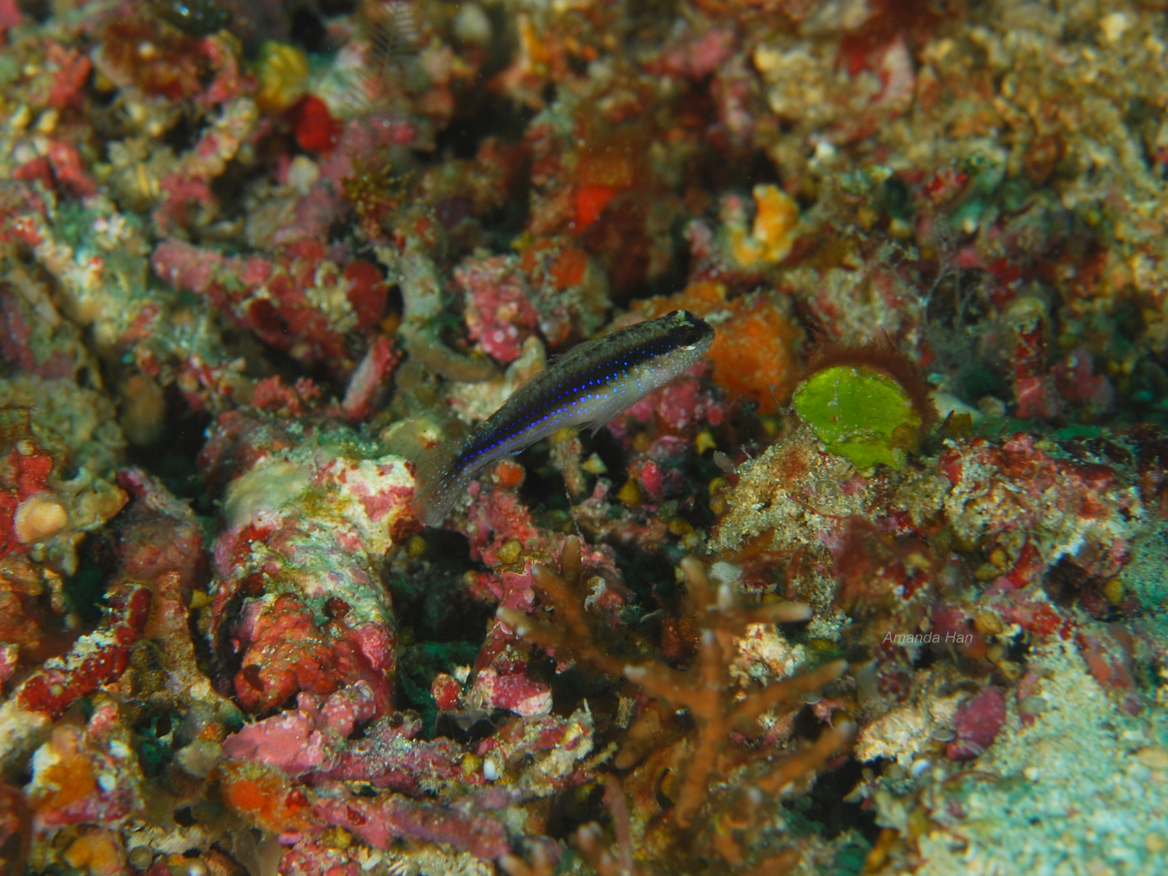在以前,會把這隻歸類為 Iniistius dea 的幼魚,但是目前都已經改為 Iniistius pavo 巴父項鰭魚 的幼魚了。由此可見,幼魚的鑑定是多麼不容易,還需要生物學家們不斷地專業修正。