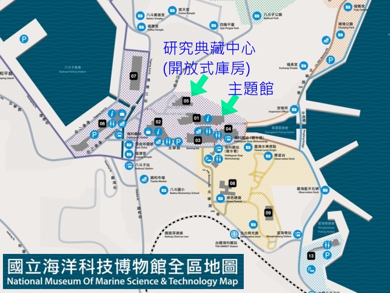 研究典藏中心(開放式庫房)的位置就座落在海科館的主題館旁邊。