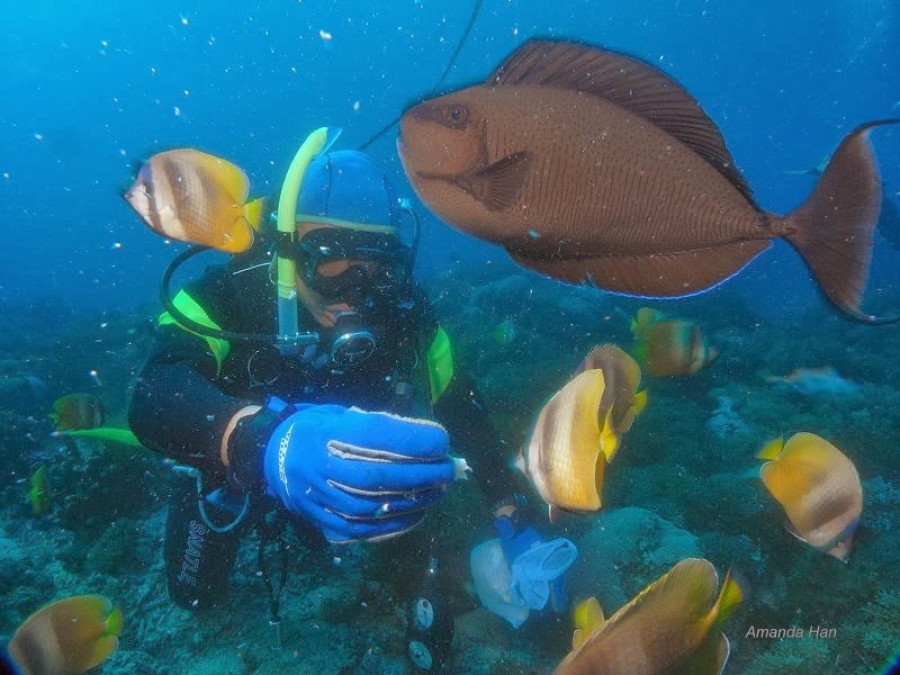 在綠島石朗有餵魚經驗者,對這種魚一定不陌生,他們超愛吃麵包的。當他們發現有麵包時,就會甩甩尾巴加速衝來。