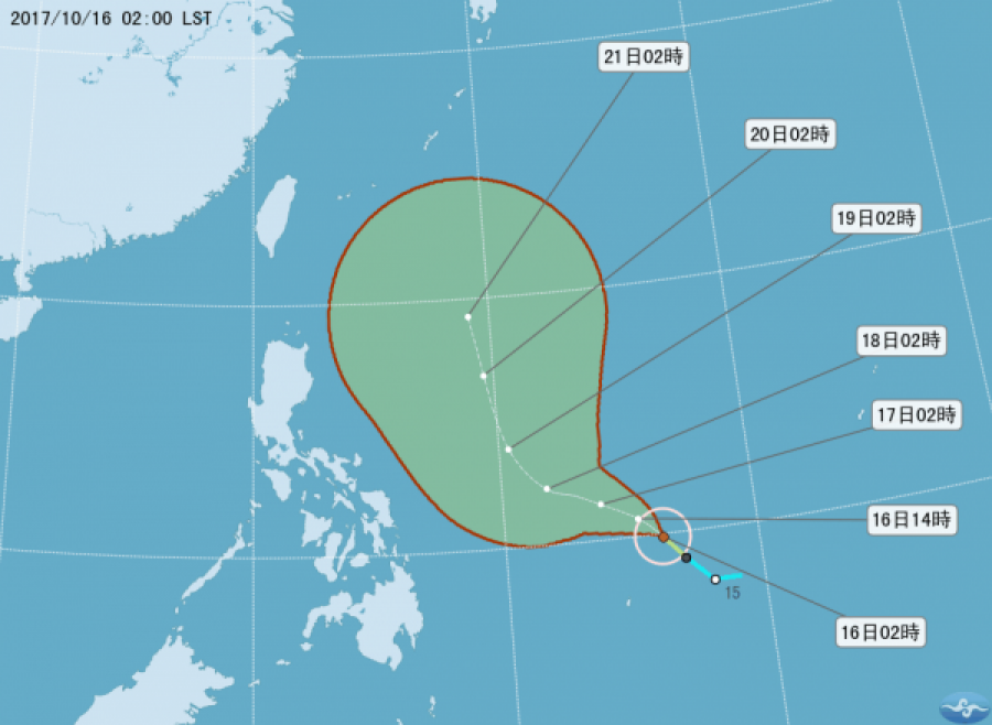 今年第21號颱風「蘭恩」已於今(16)日凌晨3時15分(台灣時間)正式生成。(圖片擷取自中央氣象局)