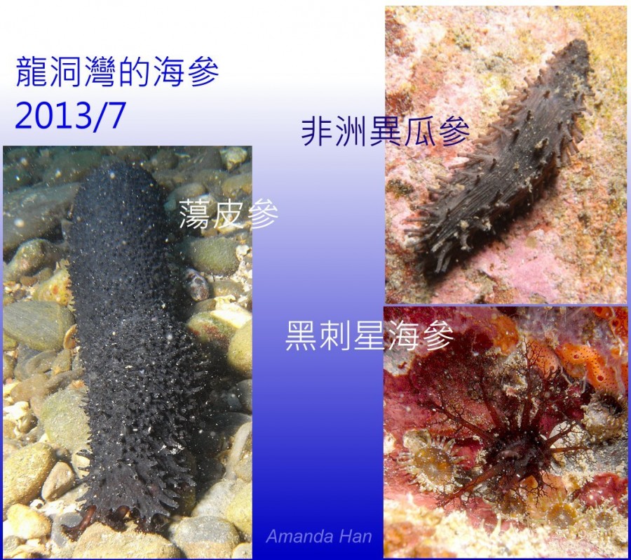照片攝於 2013/7/30 龍洞灣公園 (包含 蕩皮參 Holothuria leucospilota 、 非洲異瓜參 Afrocucumis africana 、 黑刺星海參 Holothuria cinerascens )