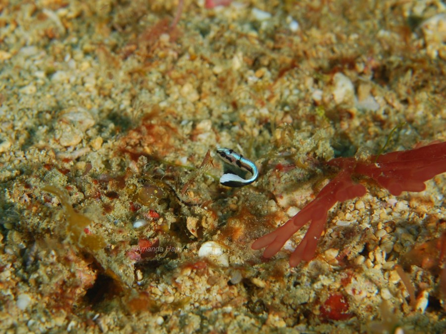 這隻小魚是 Plectorhinchus pictus 花石鱸 (胡椒鯛)的幼魚,屬於石鱸科 ( Haemulidae )。