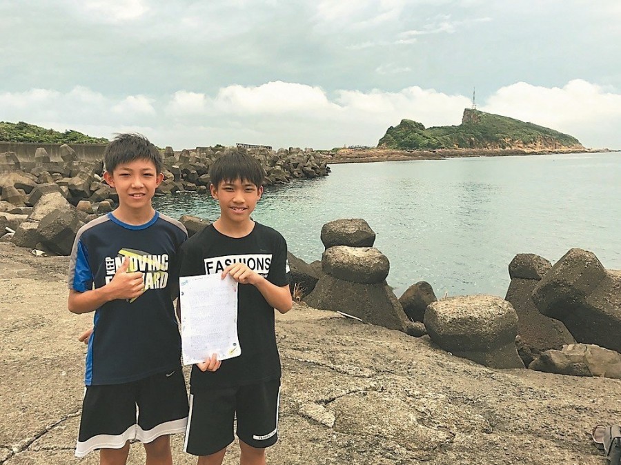 野柳國小六年級學生何昕融(右)和自治市長楊翊綸寫信給侯友宜市長,為劃設海洋保育區請命。 記者吳淑君/攝影